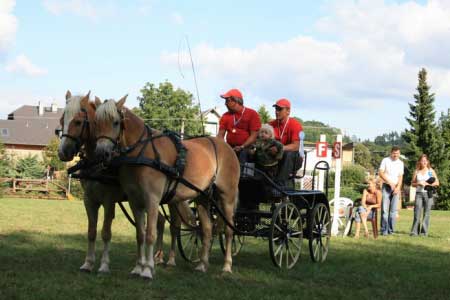 Po vyhlášení nejlepších koní celé výstavy se mohlo pokračovat v soutěžení, tentokrát v zápřahu. První byl na řadě vozatajský parkúr, ve kterém zvítězila dvojice Porgy, Niki pod vedením pana Alfréda Kačmaře, kteří reprezentují Stáj AKMONT STEEL s.r.o. Ludgeřovice. Jako druhá skončila tatáž dvojice, ale pod vedením jeho syna pana Davida Kačmaře. Třetí příčku obsadil hřebec Namer s Petrem Novákem. Ještě před začátkem poslední soutěže nám tajemný Zoro a jeho španělská krasavice, v podání sester Isabely a Blanky Remeňových ze Stáje Boňkov, předvedly ukázku Španělský sen s haflingskou klisnou Fábií a welsh pony valachem Šemíkem. Do posledního klání, ovladatelnosti v kládě, nastoupili už jen tři účastníci. Nejlépe si s úkolem poradil pan Jedlička s klisnou Ebony. Druhý skončil pan Trefil s St - Largosem, stáj Pohoř a třetí pan Bílek s Alanem, Stáj Vrchovina.