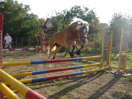 předvedl perfektní drezuru. Při skoku ve volnosti kromě připravené skokové řady přeskočil i zhruba