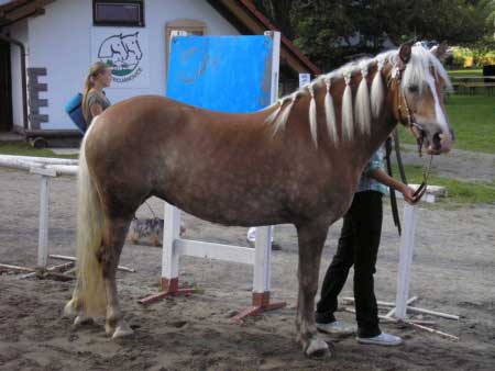 Podlesí pod Pradědem. Tato klisna dostala velmi dobré hodnocení za užitkový typ a stavbu těla.