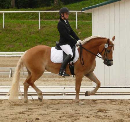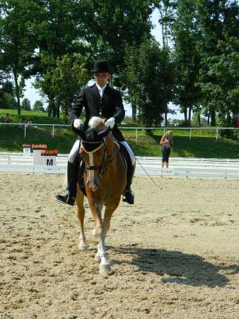 Již loni v zářijových Pardubicích jsme měli možnost vidět jezdecké umění dvojice Pavla Lišky v sedle donedávna působícího plemeníka ST-Montyho. Letos se přihlásili do nejtěžší drezurní soutěže plemene hafling, tedy do třídy obtížné. Na startovní listině bylo mezi 33 závodníky mnoho známých jmen s úspěchy z mezinárodních soutěží. Česká dvojice v sobotní povinné úloze předvedla naprosto konkurenceschopný výkon s nadějí na umístění v popředí. Bohužel chybička se vloudila, Pavel přílišným soustředěním zaváhal na sestavě jednotlivých cviků a v průběhu jízdy zazněl zvonek. Dvojice sice provedla opravu, ale dostala velkou bodovou srážku, čímž hodnocením 63,333% klesla v průběžném pořadí na 17. příčku. Pavel byl hodně zklamán: „Kůň šel dobře, byla to vlastní chyba“, víc slov jsem z něj nevymámila. Druhá část soutěže pokračovala v neděli kürem. Pravděpodobně předchozí zklamání svázalo jezdce, nepovolilo maximální koncentraci a s 63,125% se dostal jen na 24. místo. Po souhrnu obou kol se celkově umístil na dobrém dvacátém místě. Nutno dodat, že hřebec je běžně využíván jako provozní kůň a Pavel s ním trénuje jen 2 x týdně. Přesto je mezi nimi cítit souznění a jsou skvěle sehraným párem. Šampióny obtížné drezury bravurním výkonem 68,167% + 71,625% se stala rakouská dvojice Tabea Bartl a Latina S.