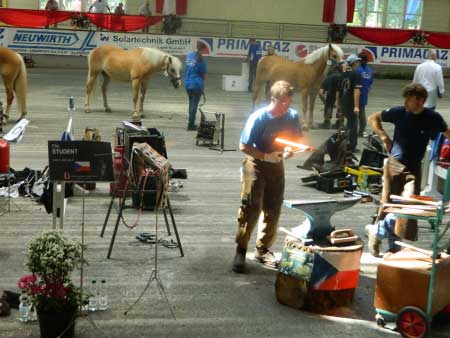 V největší ze tří hal zároveň probíhalo Mistrovství Evropy podkovářů, takže divák při pocitu přesycení adrenalinu ze sportovních výkonů mohl zavítat do prostředí plného dunících kovadlin, výhní, odéru pálící se rohoviny a shlédnout těžkou dřinu podkovářů bojujících o post mistra Evropy. I v tomto klání jsme měli české zastoupení v podobě čtveřice „pánů podkovářů“: Petr Černok, Filip Študent, Michal Fišer a Jiří Kubias. Posledně jmenovaný se probojoval nejvýš do zúženého finále mezi 16 nejlepších evropských podkovářů, což je hodno gratulace.