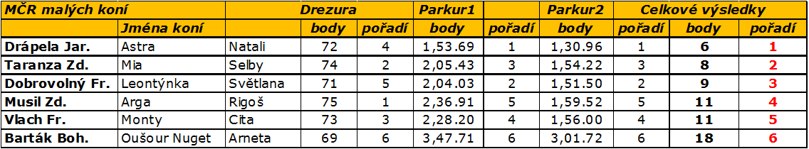 Výsledky si můžete prohlédnout na přiloženém obrázku. U stejného výsledného součtu rozhoduje lepší drezura.