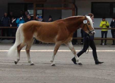 Hřebci se před komisí a početným davem diváků (vždy mě udivuje, jak jsou všechny tyto chovatelské akce v Tyrolsku brány obyčejnými chovateli vážně a slavnostně a tak se jich divácky pravidelně účastní a využívají jejich atmosféru i k osobním setkáním s ostatními více či méně známými z řad chovatelů) nejprve předvedli v tamější hale při pohybu ve volnosti. Poté byli předvedeni ve venkovní aréně na klasickém výstavním trojúhelníku na ruce v kroku a v klusu.