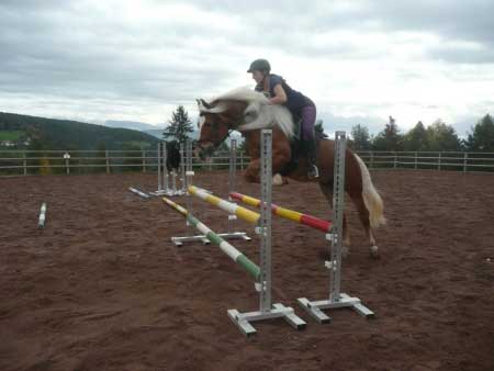 Před několika lety už ale přestala stáj vyhovovat jak technologií, tak kapacitně, proto se Oberkoflerovi rozhodli postavit prostornou a světlou stáj pro 70 koní nedaleko od San Jenesien. K areálu samozřejmě patří i velká venkovní jízdárna, kruhová ohrada, kolotoče a několik různě velkých výběhů včetně zimního výběhu, který je propojený s volným ustájením pro mladé koně uvnitř budovy stáje. Majitel se pochlubil samozřejmě tím nejlepším, co ve stáji měl, několika plemennými hřebci. Sedmiletým hřebcem Nissan, po hřebci Navarro, který kromě toho, že se v körungu 2009 umístil na výborném čtvrtém místě, sklízí úspěchy také ve sportu, především v drezuře. Hřebec ročně připouští zhruba 35 klisen, poplatek je 220 EUR. Předveden nám byl také jeho syn, který bohužel letos u körungu neuspěl. Dále se pan Oberkofler může pochlubit loňským vítězem körungu hřebcem Alexem-S (po otci Antiss), kterého má ale pouze v pronájmu a jehož připouštěcí poplatek je 300 EUR. Stejně tak má v nájmu od jihotyrolské asociace plemeníka Alpenblue (po A-Darvin), který je rovněž v chovu velmi ceněn, především pro vynikající typ, který předává svému potomstvu.