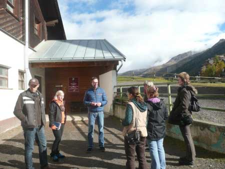 Jeden z nejvýše položených chovů (cca 1.800 m. n. m.) jsme měli možnost navštívit kousek za rakouskou hranicí, v Obergurglu, u prezidenta světového svazu Lukase Scheibera. Ten se stejně jako Oberkoflerovi věnuje především podnikání v cestovním ruchu, zisky z hotelu pomáhají financovat chov haflingů, který sestává ze základního stáda 11 elitních chovných klisen. K tomu má vždy pan Scheiber dvě mladé klisny v každém ročníku a vždy se snaží, aby měl klisny všech linií, včetně těch méně početných. Na podpoře opomíjených linií se pracuje samozřejmě také v rámci celého Rakouska, které zavedlo program podpory chovu B linie (před tím program fungoval dva roky na podporu M linie, a ještě dříve byl zpracován pro S linii).