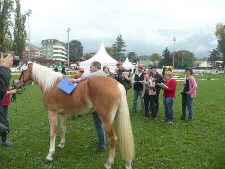 Další informace ještě doplnil Dr. Giuseppe Pigozzi, ředitel italského svazu chovatelů haflingů, který nám podrobně vysvětlil, jak funguje výběr a vzdělávání hodnotitelů haflingů v Itálii. Systém je to velmi dobře propracovaný – italský svaz má k dispozici pouze stálé profesionální hodnotitele, kteří se věnují pouze tomuto plemeni a samozřejmě se průběžně vzdělávají a setkávají za účelem co největšího sjednocení a objektivizace hodnocení. Pokud vznikne potřeba doplnit řady posuzovatelů, je vypsáno výběrové řízení, jako tomu bylo právě v roce 2014. Do letošního konkurzu se přihlásilo několik desítek zájemců a vybráni nakonec budou pouze dva, takže kritéria jsou velmi přísná. Kromě toho, že uchazeči by měli ideálně mít veterinární nebo zemědělské vzdělání a splňovat jasná základní kritéria pro přijetí, je to především nutnost projít kurzem a praktickými zkouškami, během nichž si svaz postupně vybírá stále užší počet lidí, až nakonec vybere šťastlivce, kteří tuto práci získají.