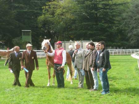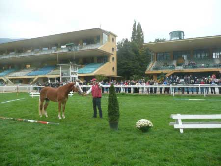 V neděli nás čekal opět Dr. Botte a sedm nejlepších hřebců ze včerejšího dne. Vše probíhalo samozřejmě za hojné účasti diváků. V cílové rovince dostihové dráhy byli jednotliví hřebci předvedeni v postoji, v klusu a kroku. Po té se obecenstvu předvedlo několik hřebců IIa třídy, kteří ještě zůstali ze soboty a majitelé doufali, že nalákají případné zájemce o připouštění na následující sezónu. Během krátké přestávky, kdy komise ještě ladila detaily a rozhodovala o letošním vítězi, jsme obcházeli jednotlivé finalisty a snažili se srovnat jejich pořadí a neuříznout si před Italy ostudu. Výsledek naší práce byl velmi dobrý, hřebce na prvních třech místech jsme odhadli prakticky všichni stejně, jako je následně seřadila komise, i pořadí zbývajících čtyř nových plemeníků bylo velmi podobné našemu odhadu. A aby nám do nosu moc nepršelo, srazil nám hřebínek Dr. Botte, když poznamenal, že on osobně by hodnotil trochu jinak. Vzhledem k tomu, že je v komisi pro světovou výstavu, nepřešli jsme jeho slova jen tak. Vítězem körungu se stal náš favorit Athos-S po A-Oul Anbator, z matky Edera po Antinor, který se výborně prezentoval především v pohybu a vynikající známku dostal také za harmonii. Rezervním vítězem komise vyhlásila hřebce Stolz-S po importovaném hřebci Storm, z matky Flicka po Boras, který obdržel prakticky totožné známky jako vítěz.