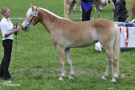 Na svod se nakonec dostavilo k ohodnocení 182 klisen, z nichž jich 8 poslali hodnotitelé pryč s verdiktem, že budou ohodnoceny znovu v podzimním termínu. Jedna klisna byla zapsána do třetí třídy, dalších 25 do třídy první a ostatní do třídy IIA nebo IIB. Bylo evidentní, že komisaři dávají obrovský důraz na mechaniku pohybu a harmoničnost tělesné stavby. Nutno ale podotknout, že právě u tohoto kritéria jsem se v některých případech s verdiktem příliš nesešla - v první třídě se například objevila klisna Nelke, která podle mého názoru (a ten samozřejmě nemusí být správný :-)) ) příliš harmonií neoplývá - viz foto. Tato klisna dokonce získala velmi dobrou za harmonii.